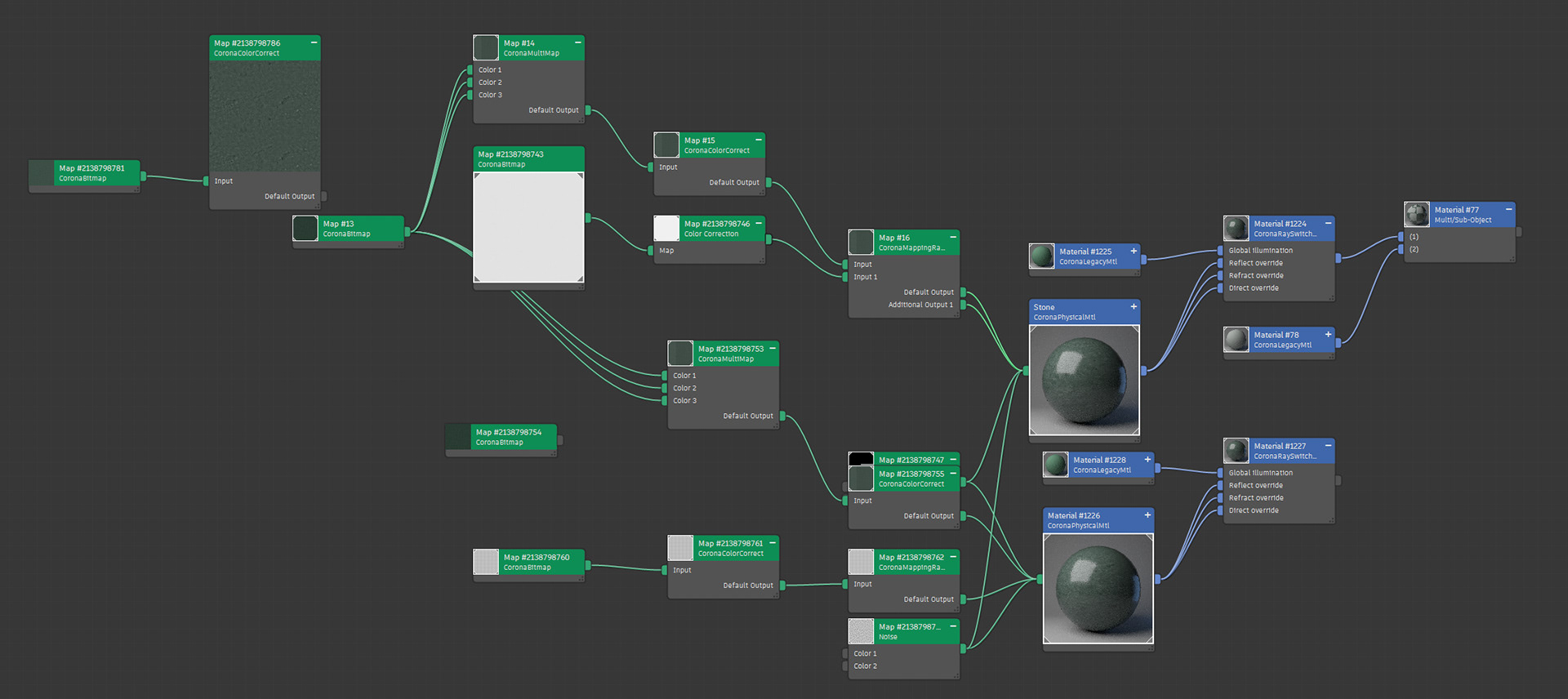 As an example, you can see below how many aspects of one material should be taken into account, like reflections, colors and specific texture relief.