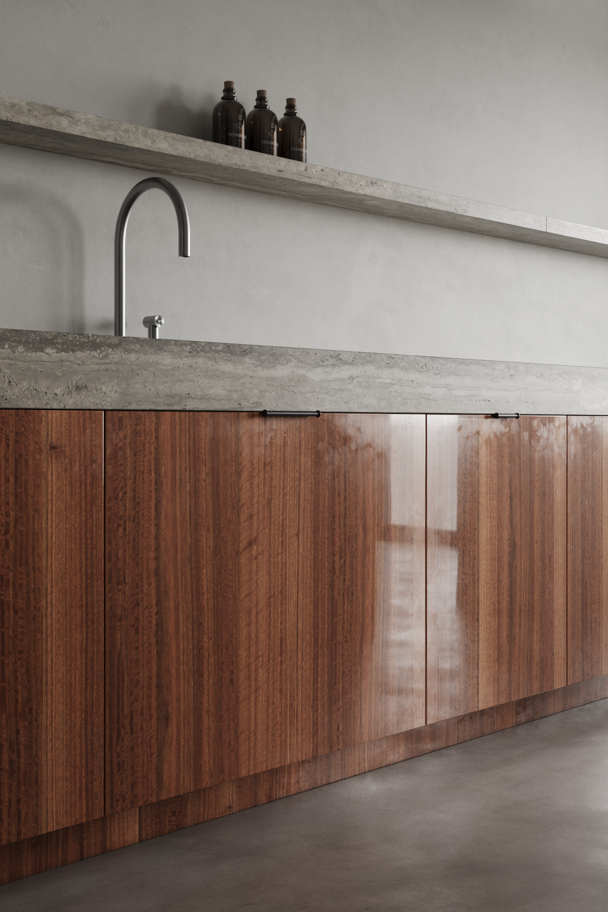The results of my work in the advanced material rendering course focused on mastering various wood textures for a kitchen cabinet. To enhance realism, dirt maps were incorporated.